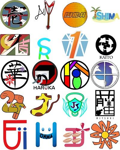 下記高校総体の作品出品の後、イラストレータを使用してロゴマークを制作しました。自分の名前や好きなものをイメージして作り上げました。以下一部の作品です。