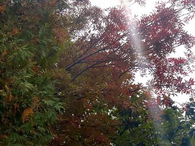さて、曇り空を見上げると敷地内の木々も色づき始めているのが分かります。