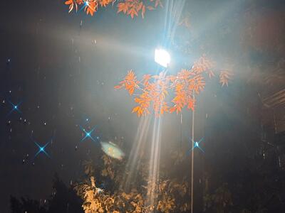 思わず空を見上げ、街頭に映る紅葉と雪に見とれてしまいました。